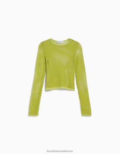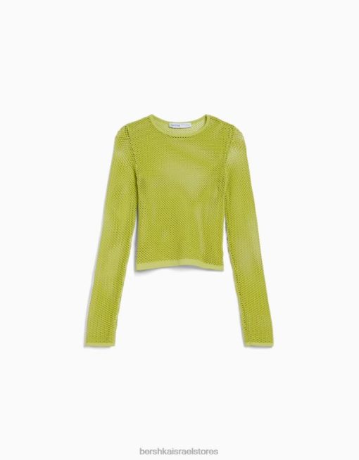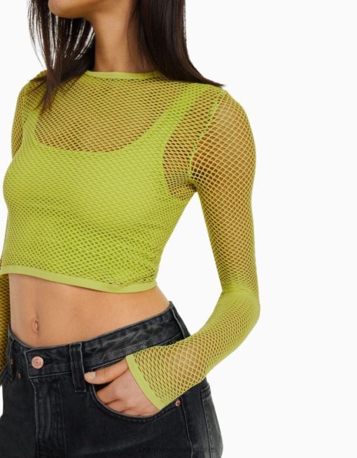 נשים חולצת רשת עם שרוול ארוך ללא תפרים ליים 2L6JD526 Bershka הַלבָּשָׁה