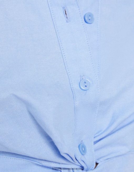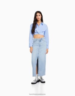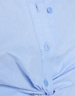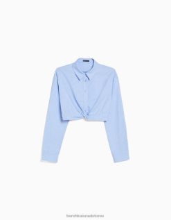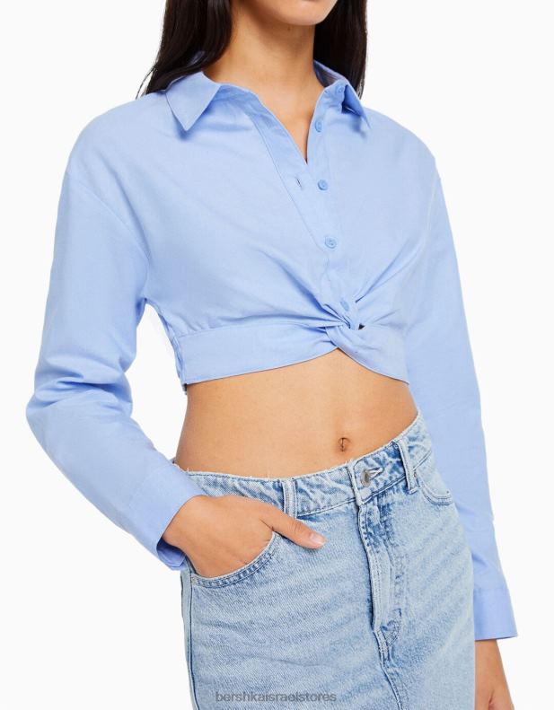 נשים חולצת שרוול ארוך עם פרט מוצלב בחזית כחול בהיר 2L6JD921 Bershka הַלבָּשָׁה