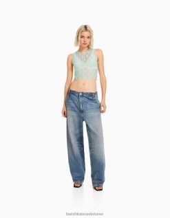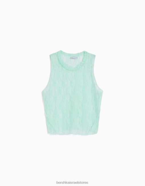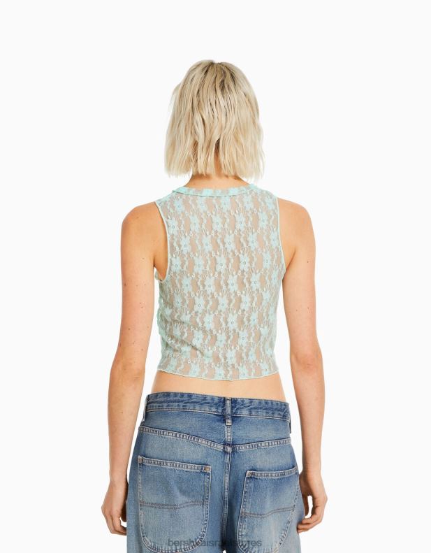 נשים חולצת תחרה ללא שרוולים ירוק 2L6JD399 Bershka הַלבָּשָׁה