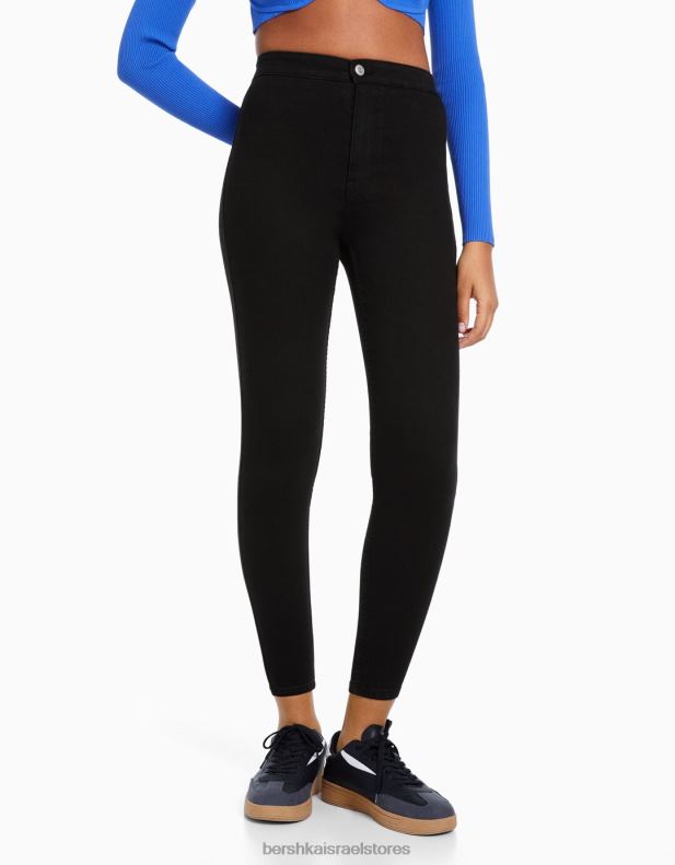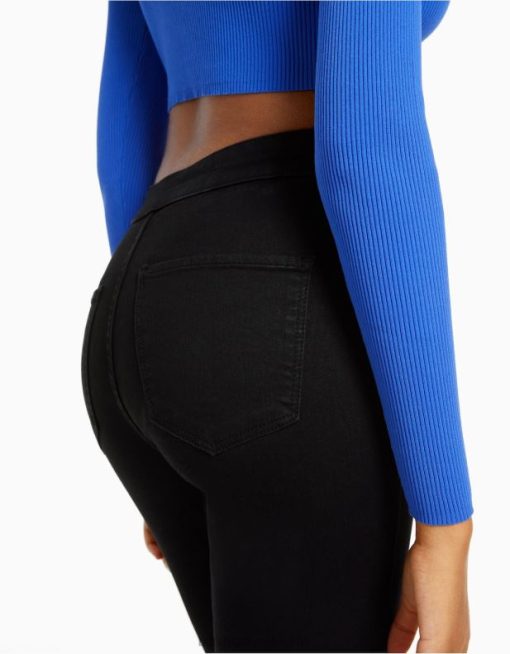 נשים חותלות ג’ינס גבוהות במיוחד שָׁחוֹר 2L6JD1587 Bershka הַלבָּשָׁה