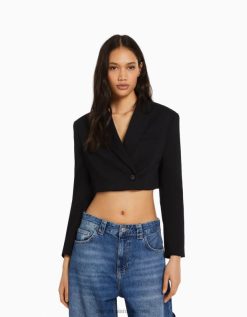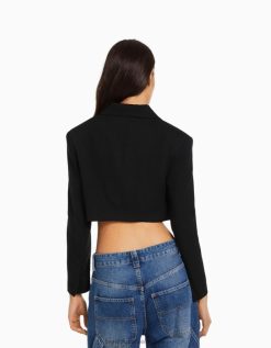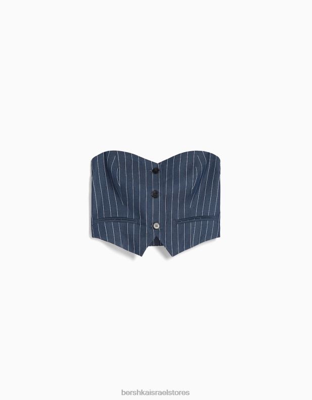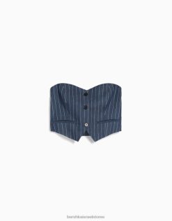 נשים חזייה מחויטת פסי סיכה עם כתפיים חשופות כחול כהה 2L6JD1188 Bershka הַלבָּשָׁה