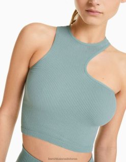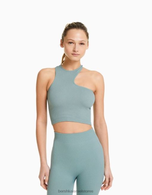 נשים חלק עליון א-סימטרי ללא שרוולים ירוק 2L6JD878 Bershka הַלבָּשָׁה