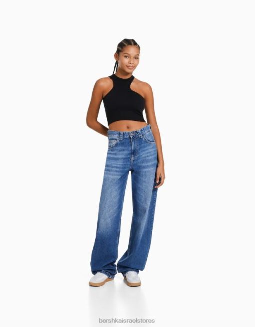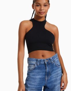 נשים חלק עליון א-סימטרי שָׁחוֹר 2L6JD876 Bershka הַלבָּשָׁה