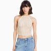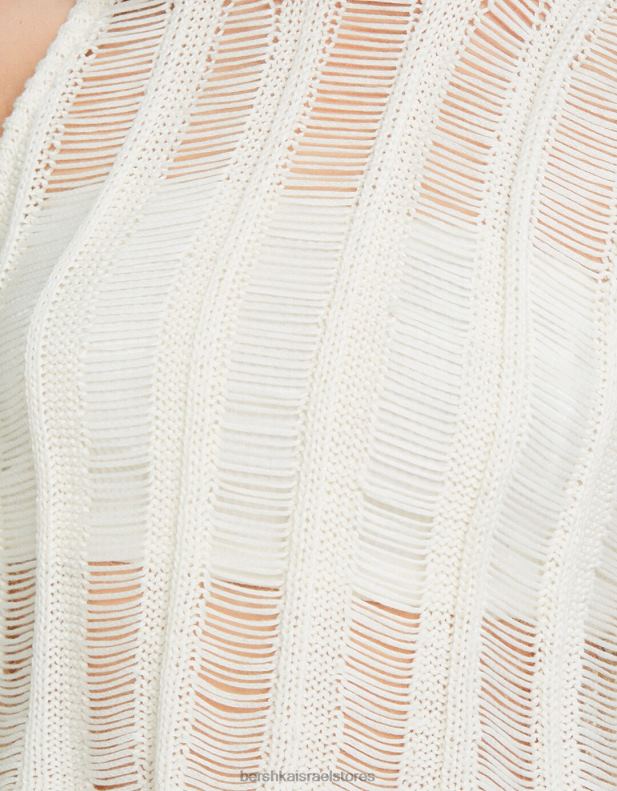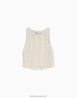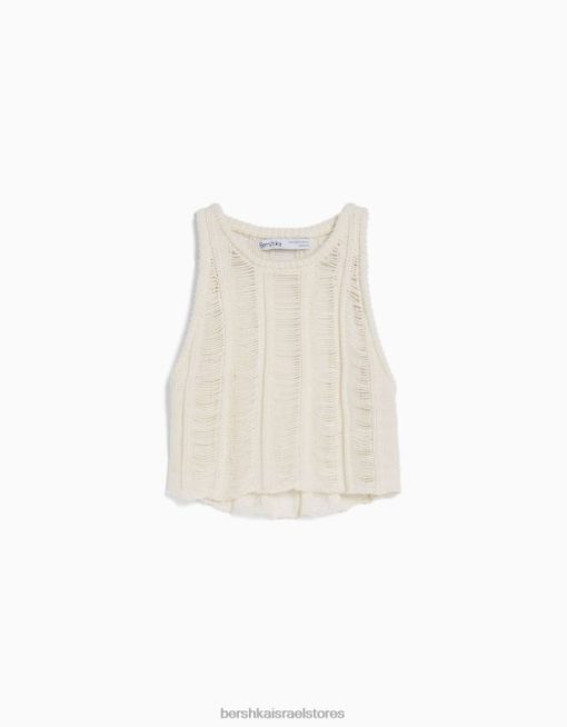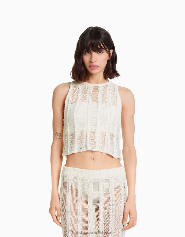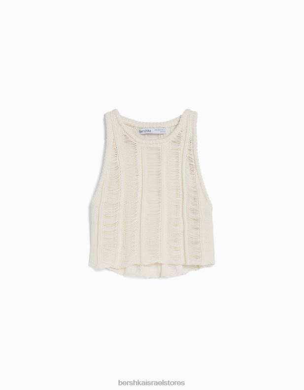 נשים חלק עליון ללא שרוולים בסריג פתוח קרם 2L6JD755 Bershka הַלבָּשָׁה