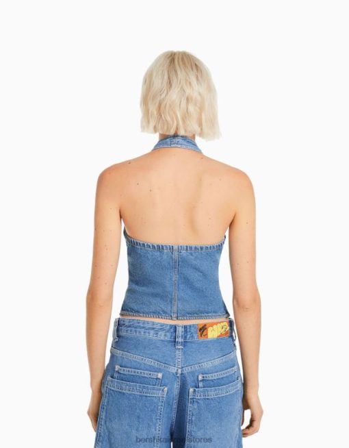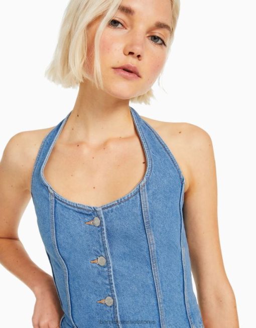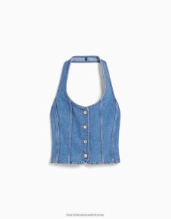 נשים חלק עליון מחוך ג’ינס כחול בהיר 2L6JD678 Bershka הַלבָּשָׁה
