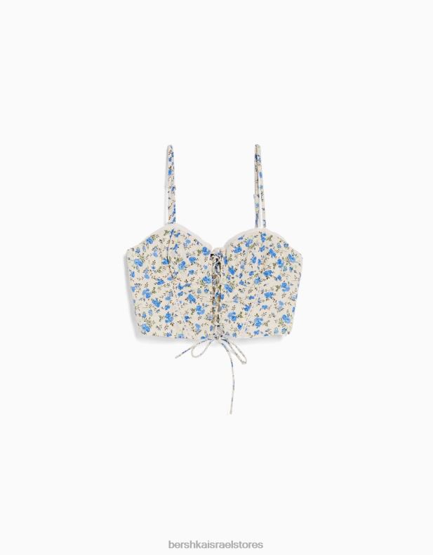 נשים חלק עליון מחוך מודפס עם רצועות ופרטי קשירה צִבעוֹנִי 2L6JD757 Bershka הַלבָּשָׁה