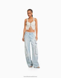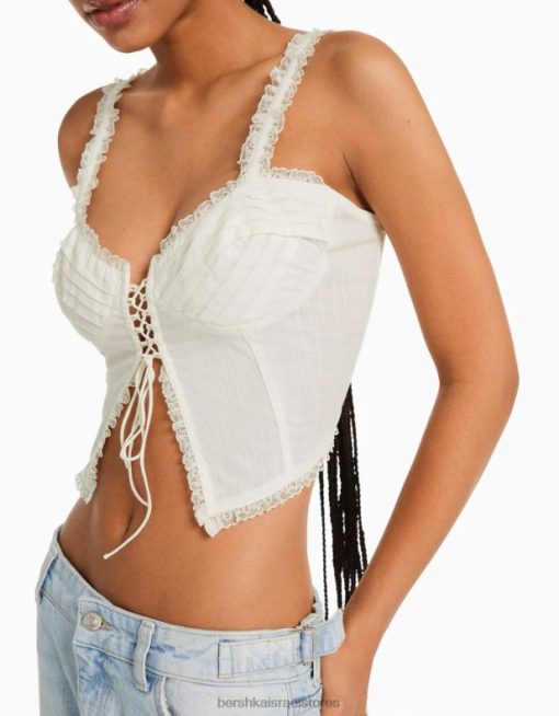 נשים חלק עליון מחוך קצוץ עם רצועות בז’ 2L6JD649 Bershka הַלבָּשָׁה