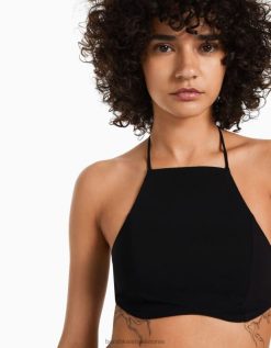 נשים חלק עליון מקושר שָׁחוֹר 2L6JD881 Bershka הַלבָּשָׁה