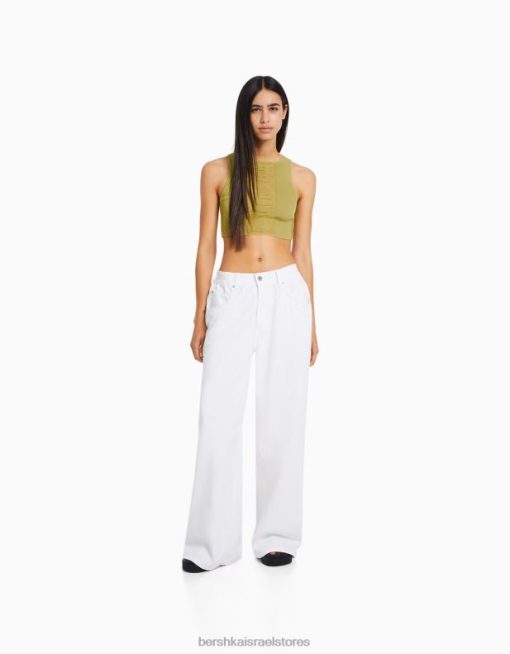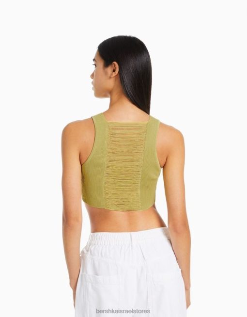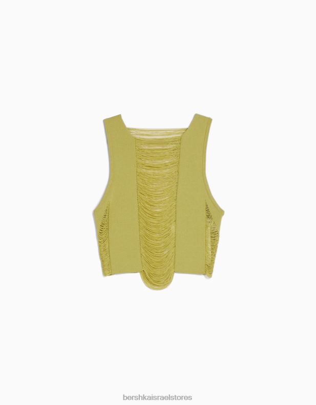 נשים חלק עליון סרוג פתוח ירוק 2L6JD855 Bershka הַלבָּשָׁה