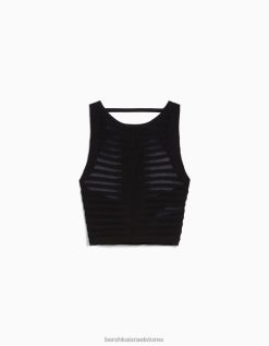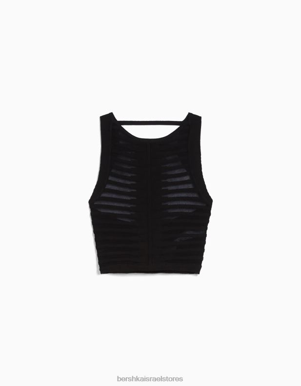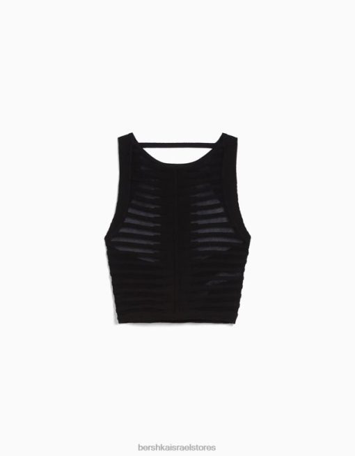 נשים חלק עליון סריג שקוף שָׁחוֹר 2L6JD783 Bershka הַלבָּשָׁה
