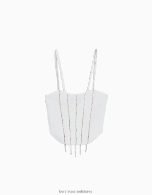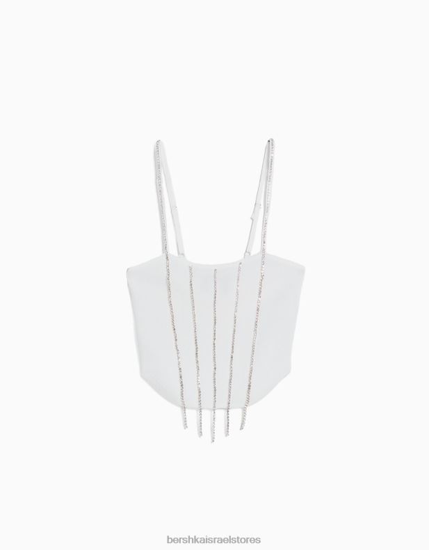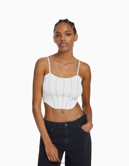 נשים חלק עליון עם סריג עם תכשיטים לבן 2L6JD763 Bershka הַלבָּשָׁה