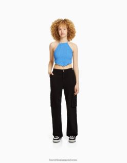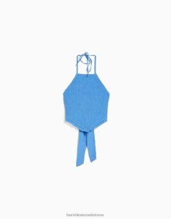 נשים חלק עליון עם קשירה ואלסטי מכווץ כְּחוֹל 2L6JD891 Bershka הַלבָּשָׁה