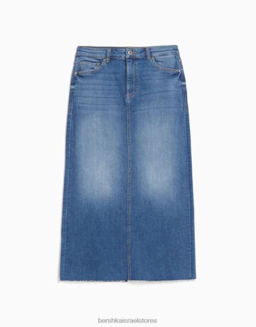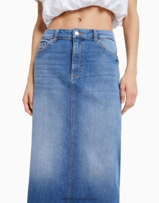 נשים חצאית ג’ינס ארוכה בכושר relax fit נשטף כחול 2L6JD1952 Bershka הַלבָּשָׁה