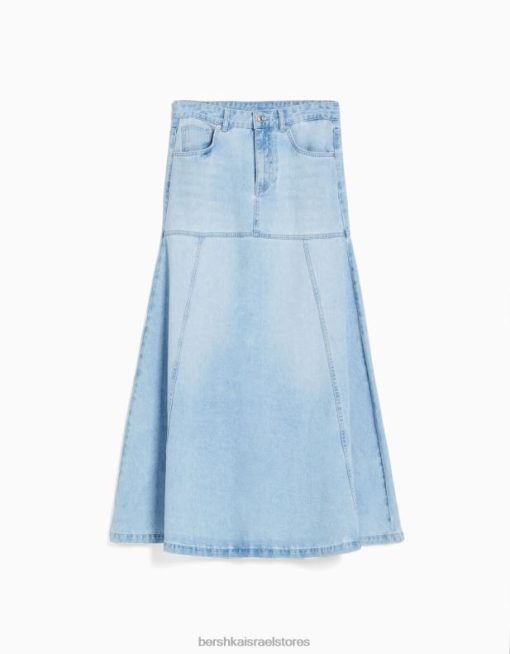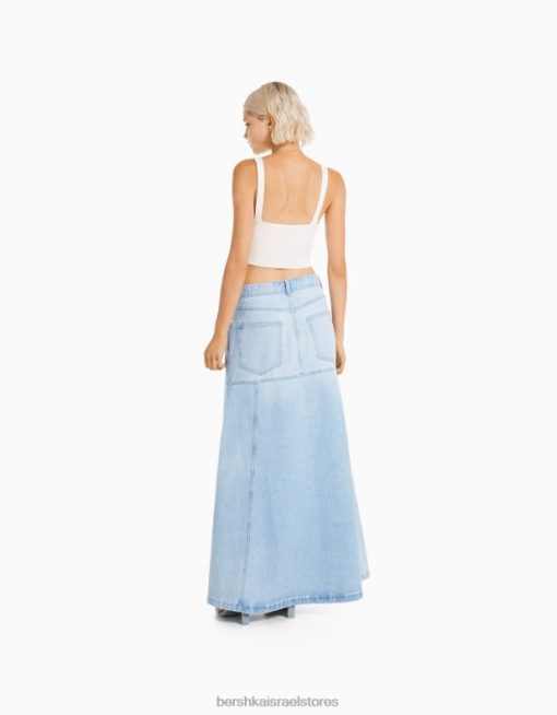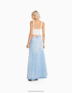 נשים חצאית ג’ינס ארוכה כחול בהיר 2L6JD1624 Bershka הַלבָּשָׁה