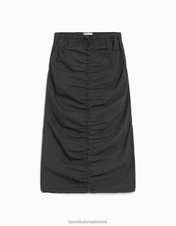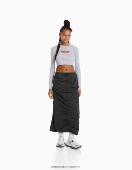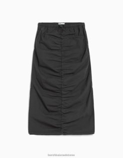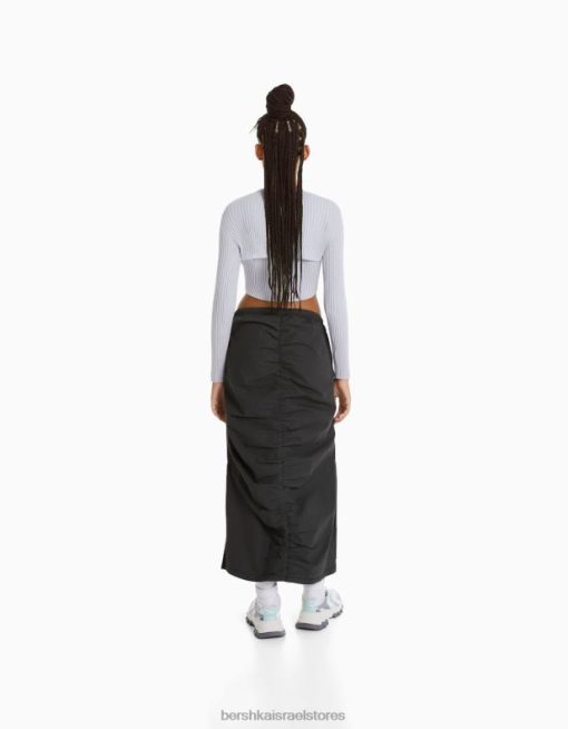 נשים חצאית ג’ינס ארוכה עם חזית אסוף אפור כהה 2L6JD1377 Bershka הַלבָּשָׁה