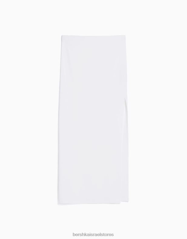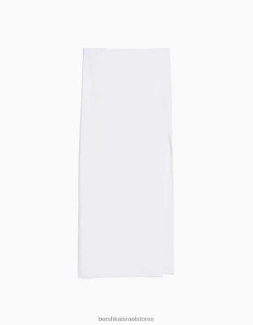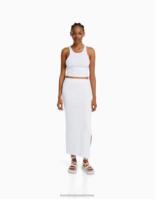 נשים חצאית כותנה ארוכה לבן 2L6JD1657 Bershka הַלבָּשָׁה