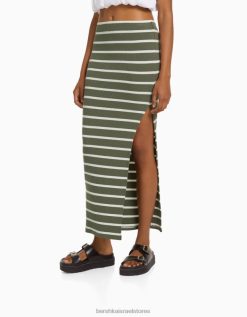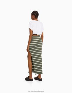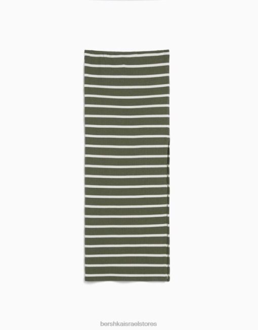 נשים חצאית מידי מפוספסת חָקִי 2L6JD1623 Bershka הַלבָּשָׁה