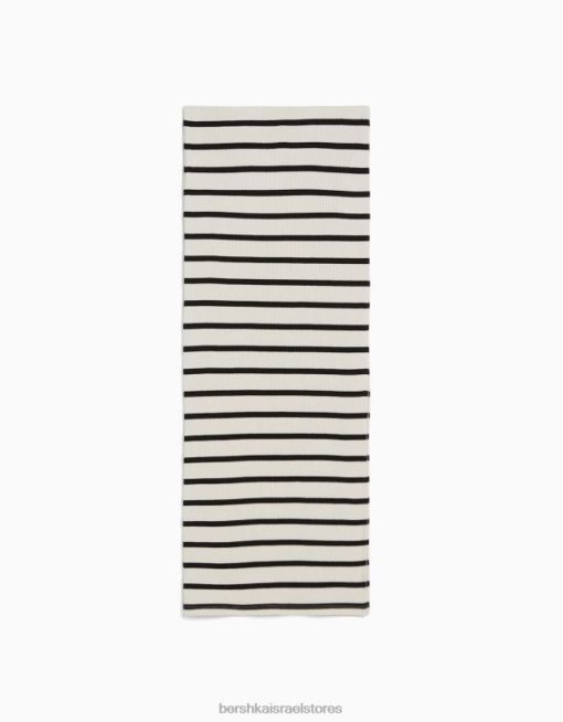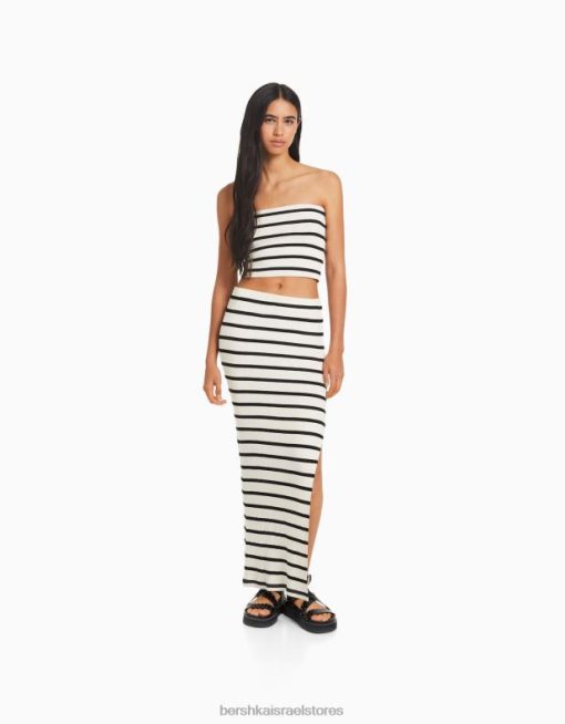 נשים חצאית מידי מפוספסת קרם 2L6JD1622 Bershka הַלבָּשָׁה
