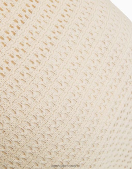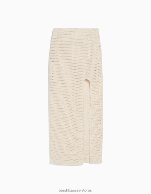 נשים חצאית מידי סרוגה כפרית בז’ 2L6JD1884 Bershka הַלבָּשָׁה