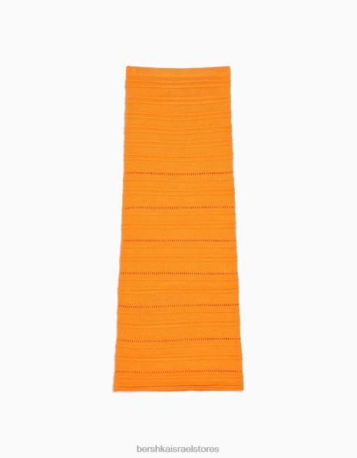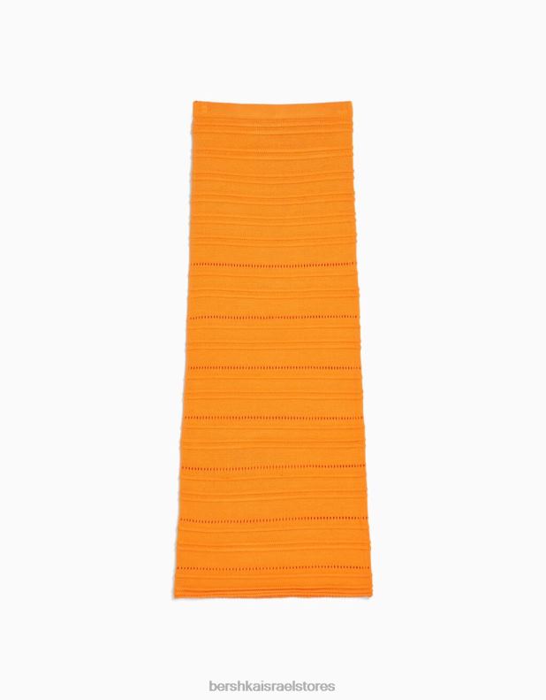 נשים חצאית מידי סרוגה פתוחה תפוז 2L6JD1883 Bershka הַלבָּשָׁה