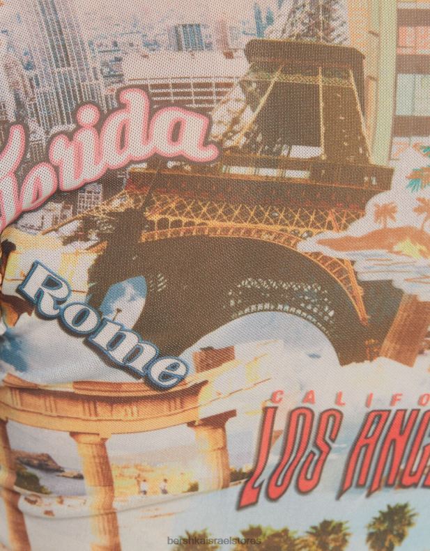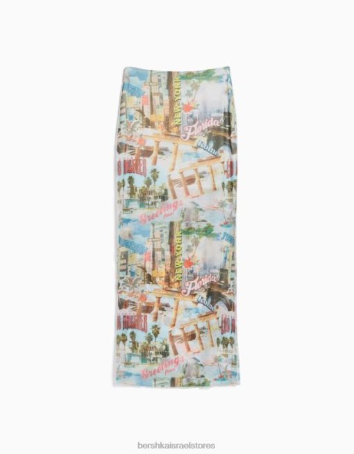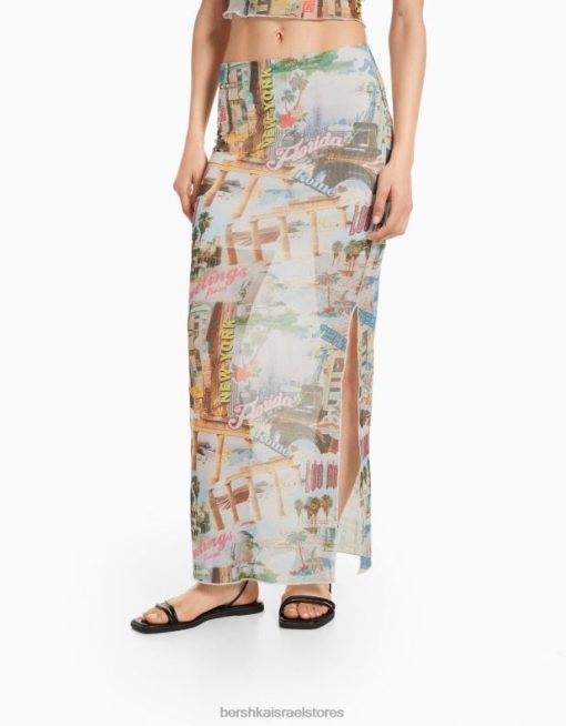 נשים חצאית מידי עם הדפס רשת קרם 2L6JD1646 Bershka הַלבָּשָׁה