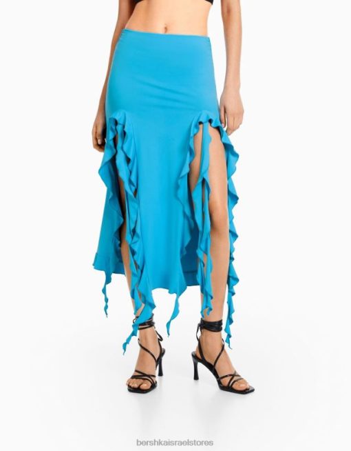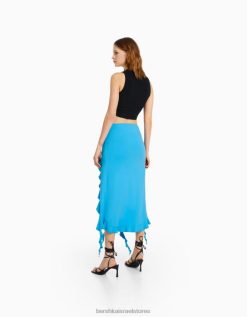 נשים חצאית מידי עם סלסולים כְּחוֹל 2L6JD1841 Bershka הַלבָּשָׁה