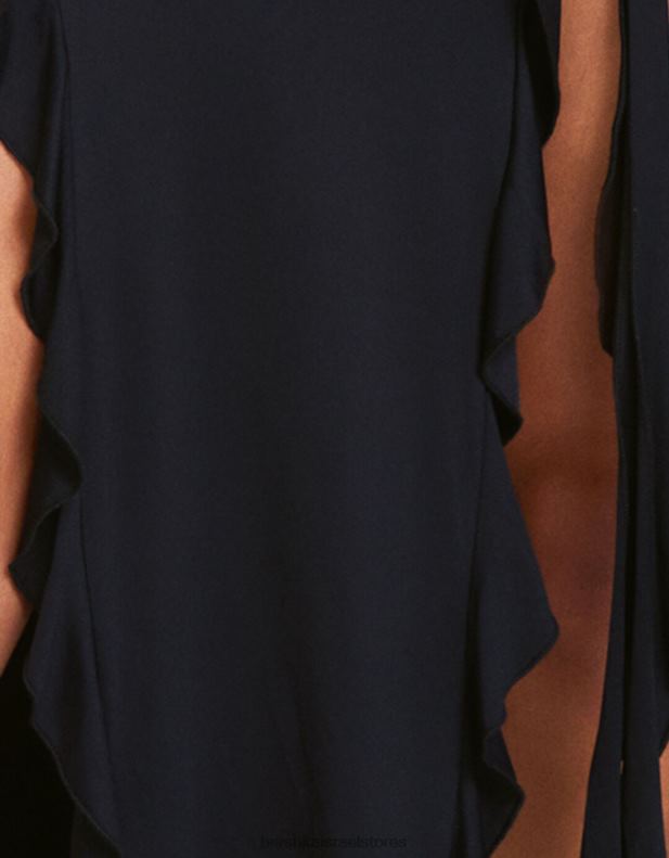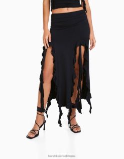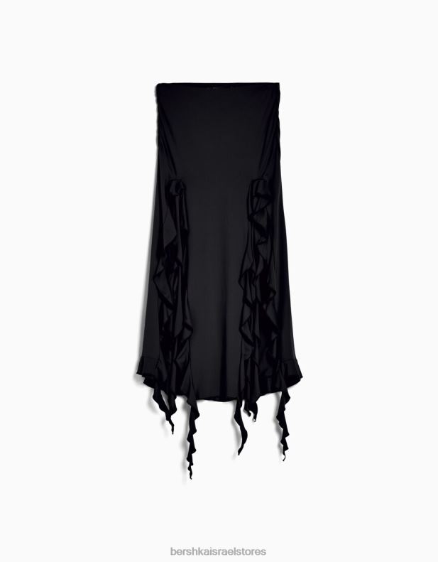 נשים חצאית מידי עם סלסולים שָׁחוֹר 2L6JD1608 Bershka הַלבָּשָׁה