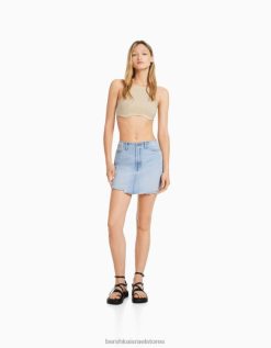 נשים חצאית מיני ג’ינס וינטג’ כחול בהיר 2L6JD1647 Bershka הַלבָּשָׁה