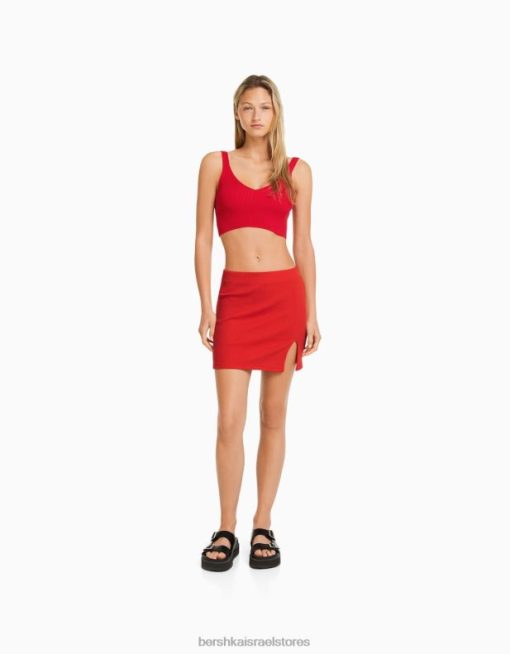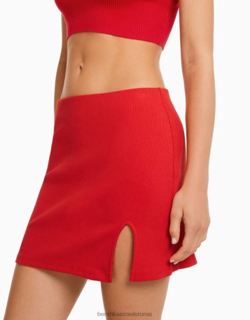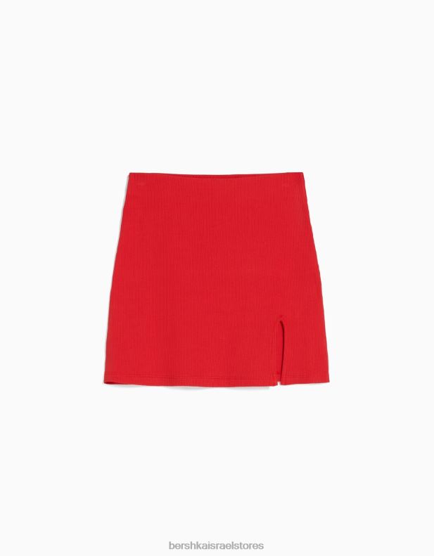 נשים חצאית מיני מצולעת אָדוֹם 2L6JD1660 Bershka הַלבָּשָׁה