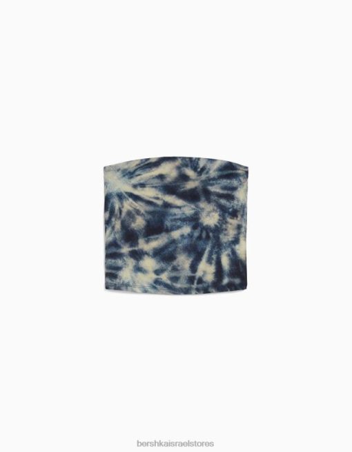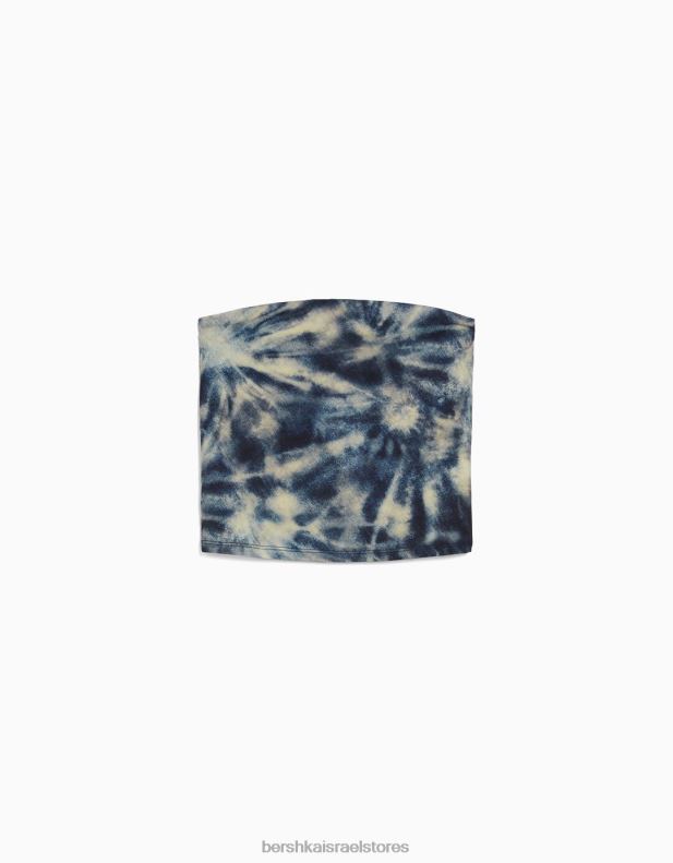 נשים טופ בנדו אפקט tie dye כְּחוֹל 2L6JD2026 Bershka הַלבָּשָׁה