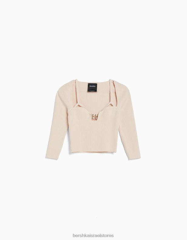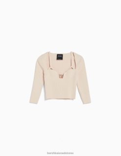 נשים טופ סריג עם קו צווארון עם פירוט חרוזים אַחֵר 2L6JD500 Bershka הַלבָּשָׁה