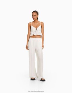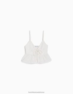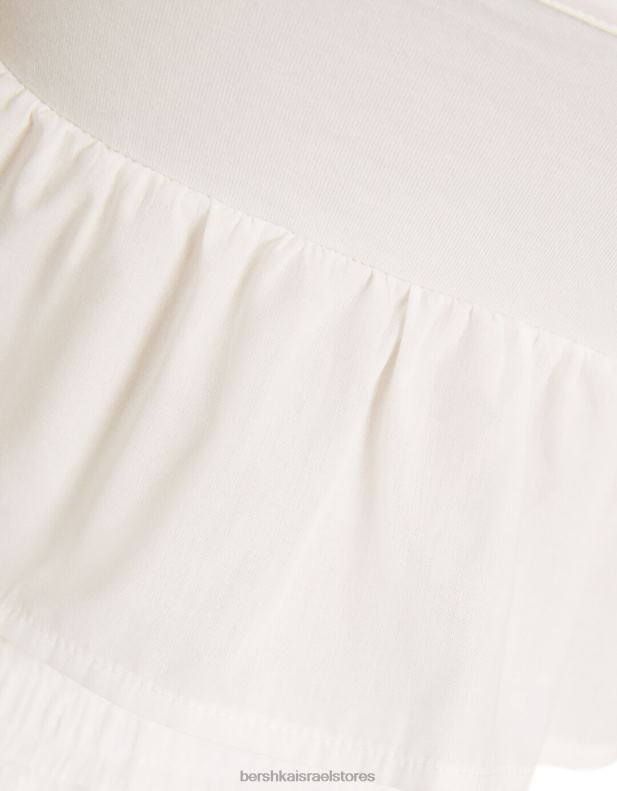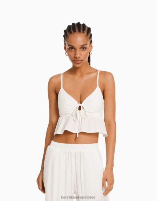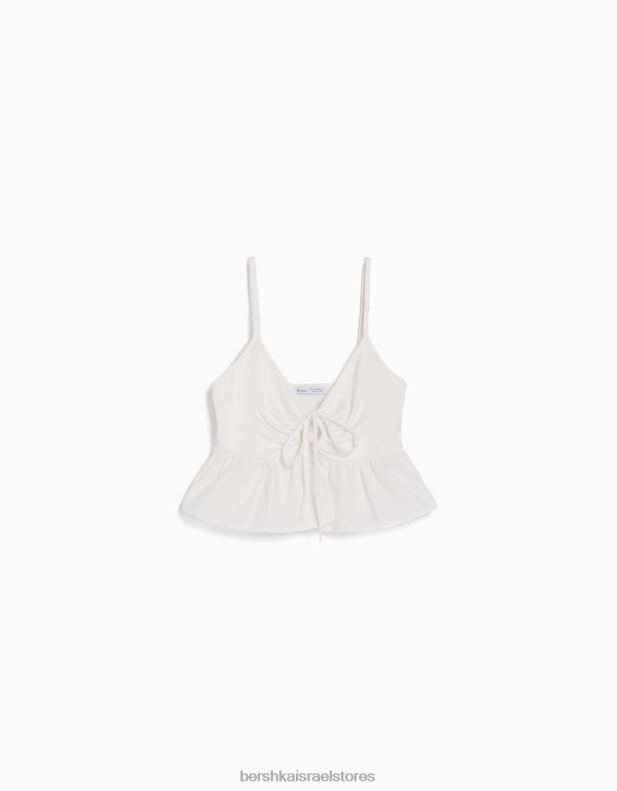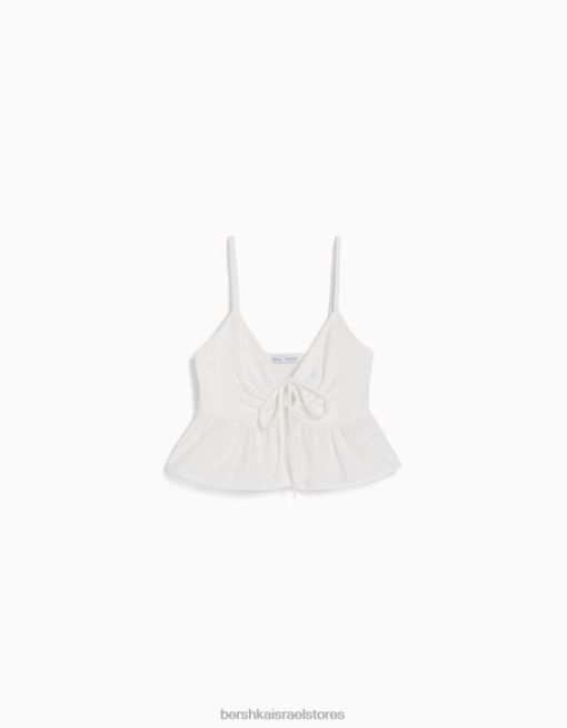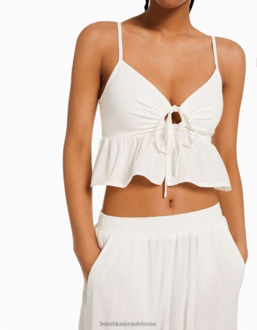נשים טופ פפלום קרופ עם רצועות קרם 2L6JD791 Bershka הַלבָּשָׁה