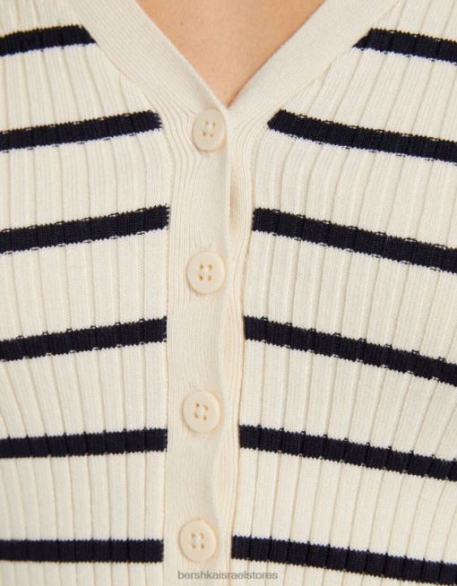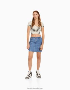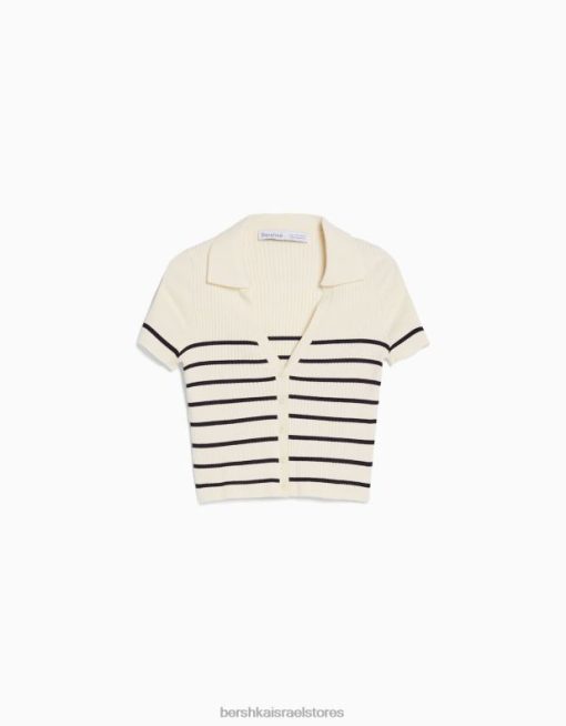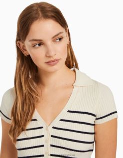 נשים טופ צווארון פולו שרוולים קצרים קרם 2L6JD1063 Bershka הַלבָּשָׁה