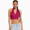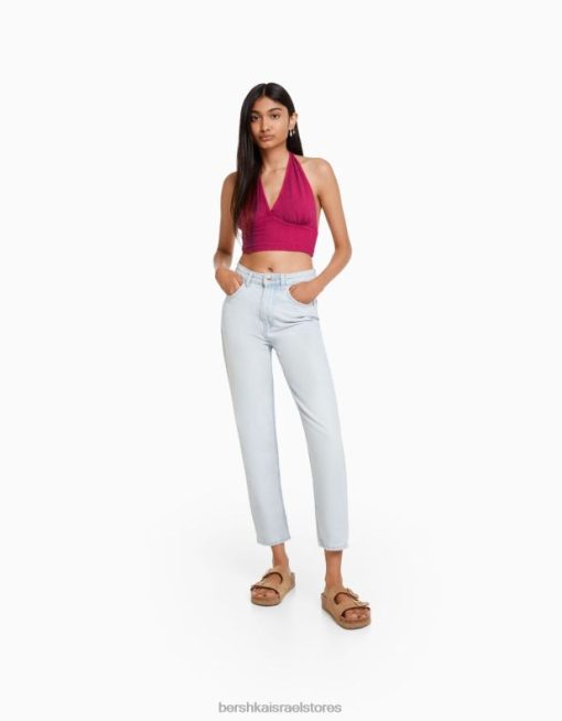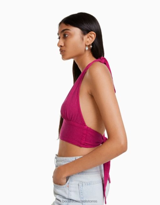 נשים טופ קרופ כפרי בתערובת פשתן ורוד פוקסיה 2L6JD732 Bershka הַלבָּשָׁה