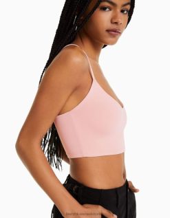 נשים טופ קרופ עם רצועות וָרוֹד 2L6JD818 Bershka הַלבָּשָׁה