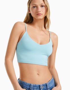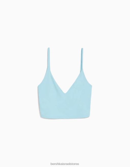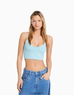 נשים טופ קרופ עם רצועות כחול בהיר 2L6JD821 Bershka הַלבָּשָׁה