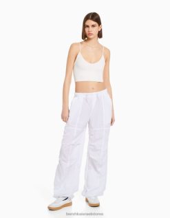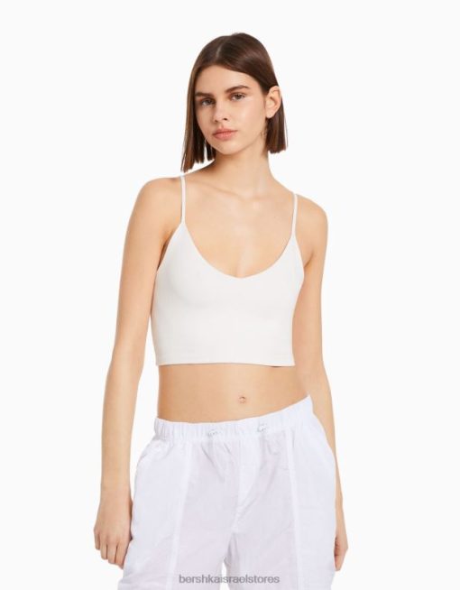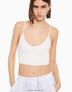 נשים טופ קרופ עם רצועות לבן 2L6JD780 Bershka הַלבָּשָׁה