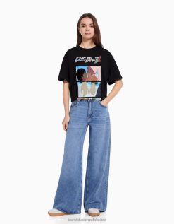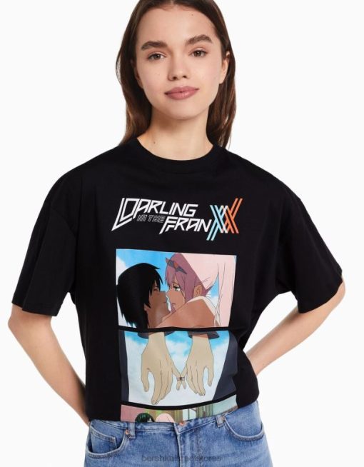נשים יקירי בחולצת טריקו עם שרוולים קצרים בהדפס franxx אַחֵר 2L6JD602 Bershka הַלבָּשָׁה