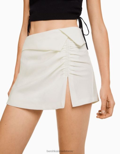 נשים כפרי אסוף skort צבע קרם 2L6JD1653 Bershka הַלבָּשָׁה