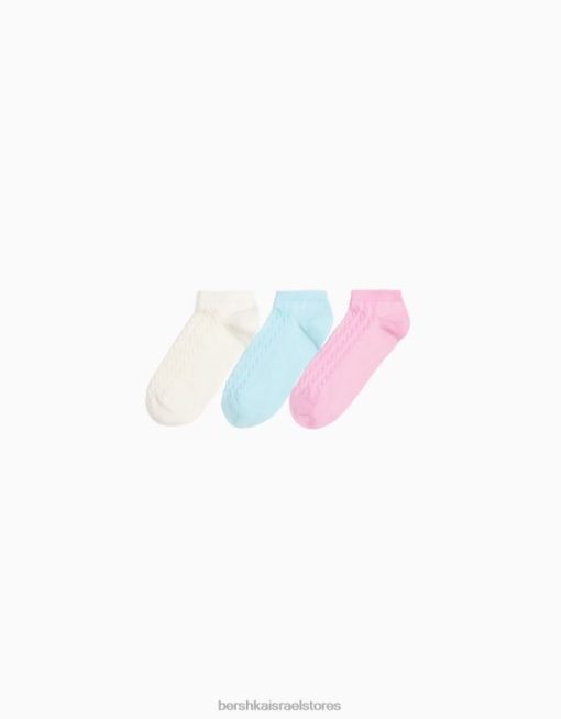 נשים מארז של 3 גרבי קרסול במרקם כחול בהיר 2L6JD2591 Bershka אביזרים
