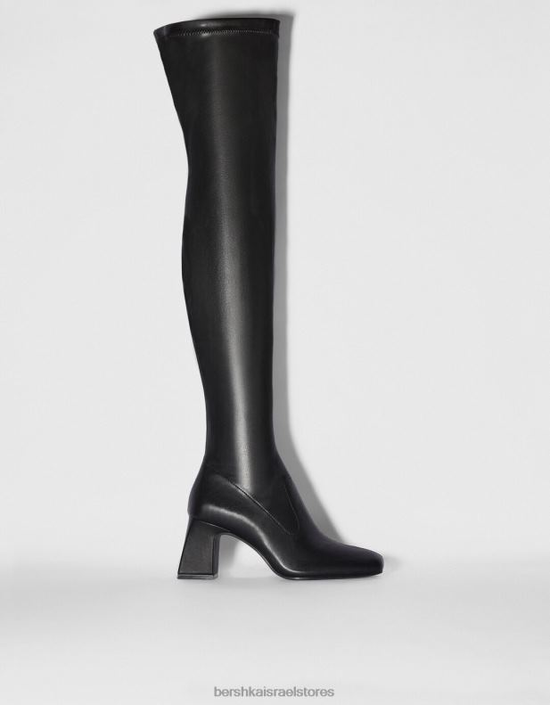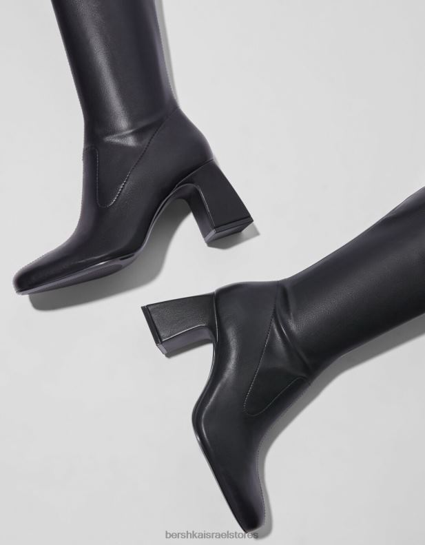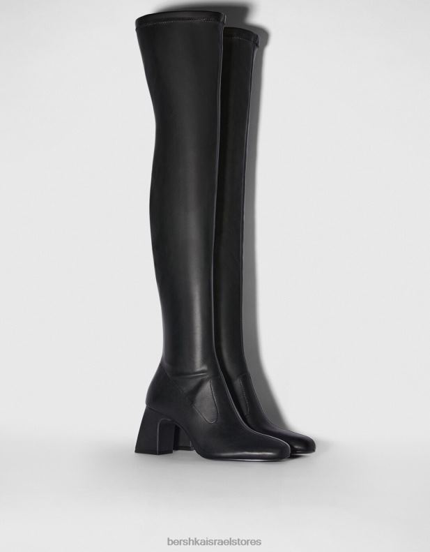 נשים מגפיים באמצע העקב מעל הברך שָׁחוֹר 2L6JD2299 Bershka הַנעָלָה