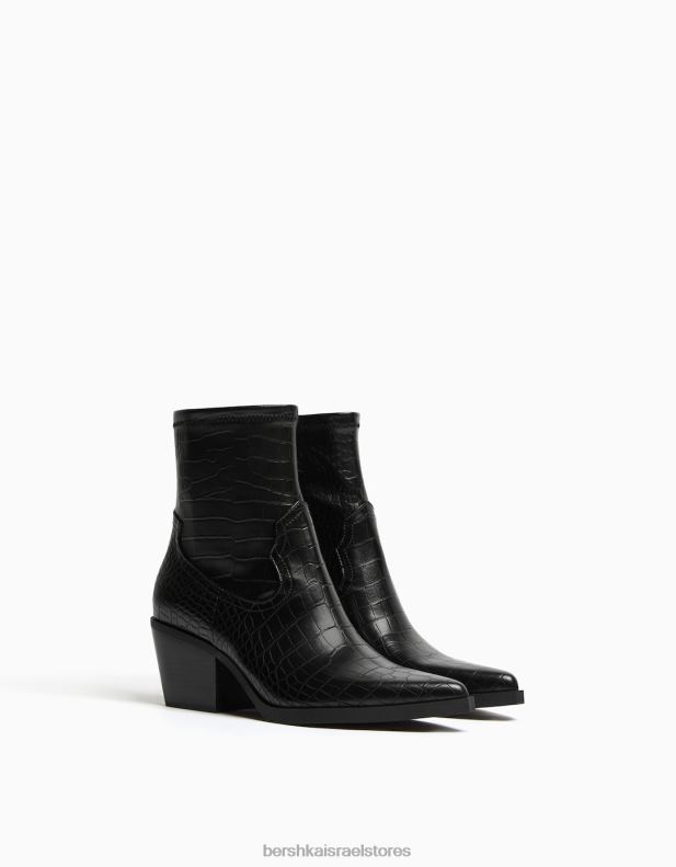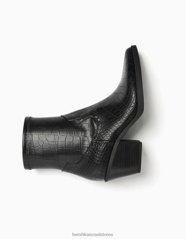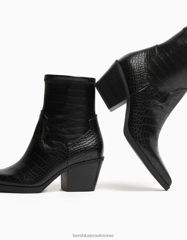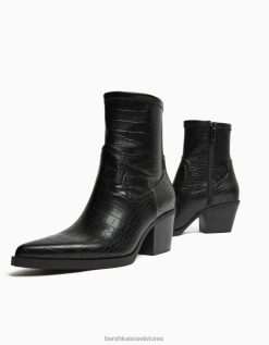 נשים מגפי בוקרים בהדפס בעלי חיים שָׁחוֹר 2L6JD1939 Bershka הַנעָלָה