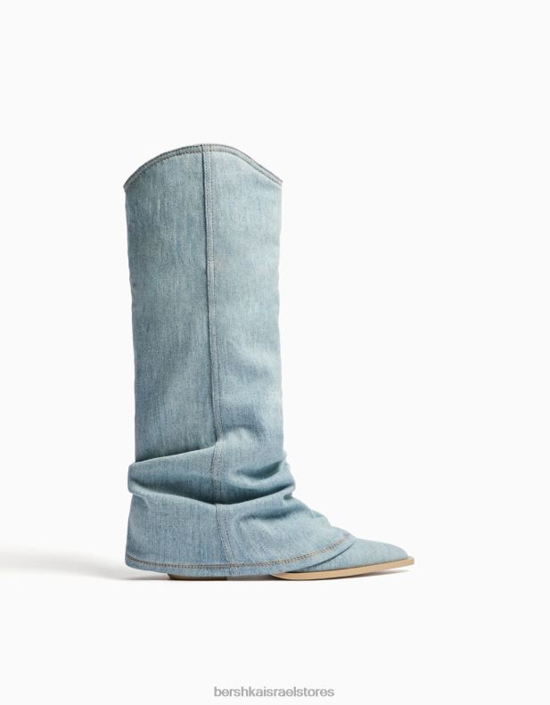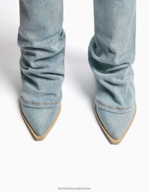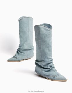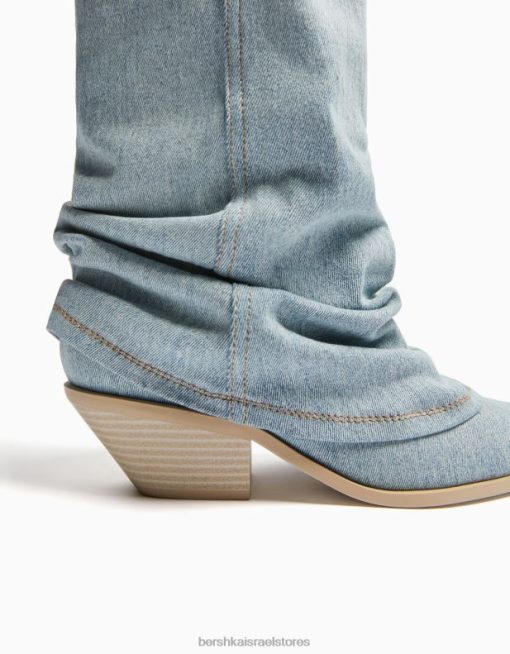 נשים מגפי ג’ינס עם עקבים של בוקרים נשטף כחול 2L6JD1925 Bershka הַנעָלָה