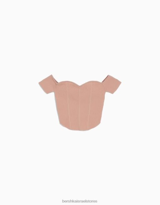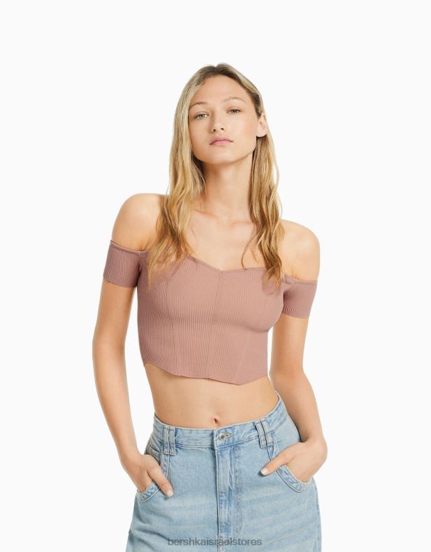 נשים מחוך סריג מחוץ לכתף עם שרוול קצר וָרוֹד 2L6JD802 Bershka הַלבָּשָׁה