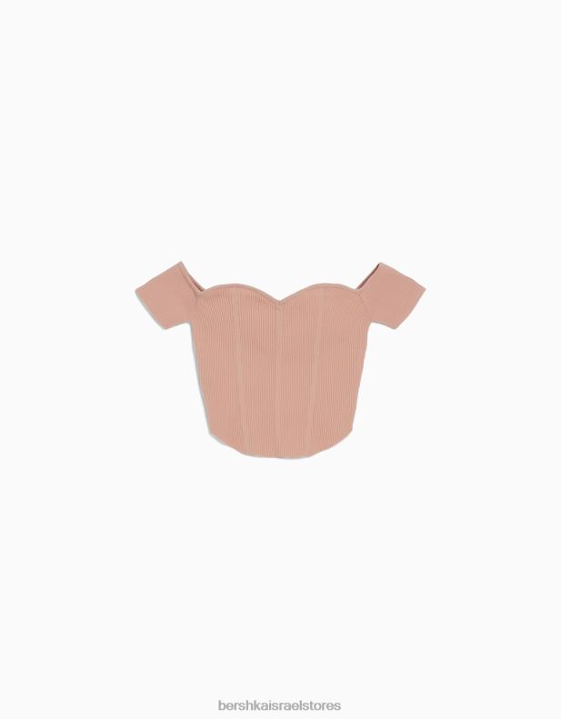 נשים מחוך סריג מחוץ לכתף עם שרוול קצר וָרוֹד 2L6JD805 Bershka הַלבָּשָׁה