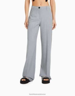 נשים מכנסיים מחויטים בהתאמה לאבא כחול כהה 2L6JD1433 Bershka הַלבָּשָׁה