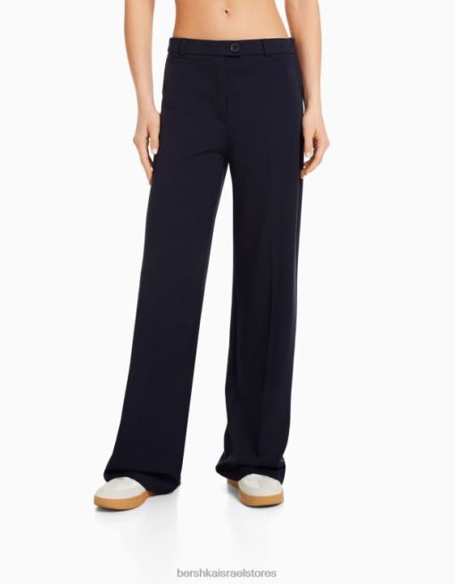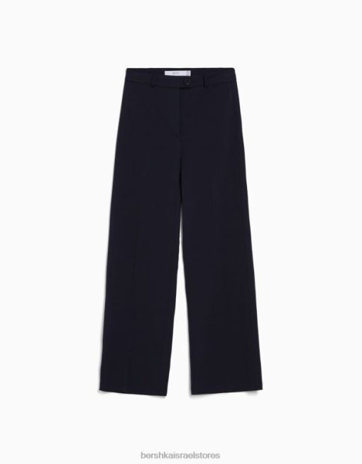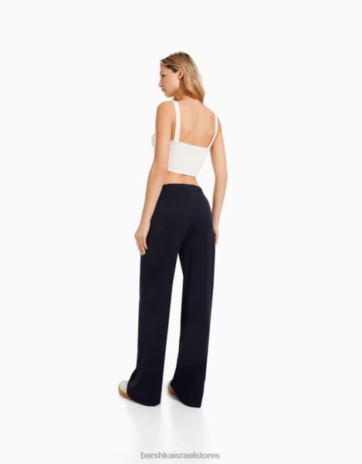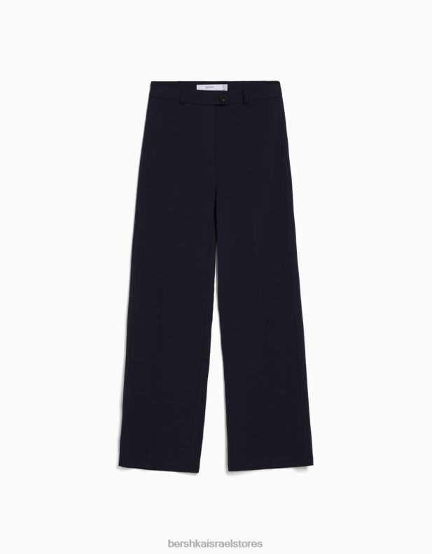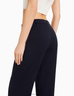 נשים מכנסיים מחויטים לרגליים רחבות עם לולאות חגורה חיל הים 2L6JD1441 Bershka הַלבָּשָׁה