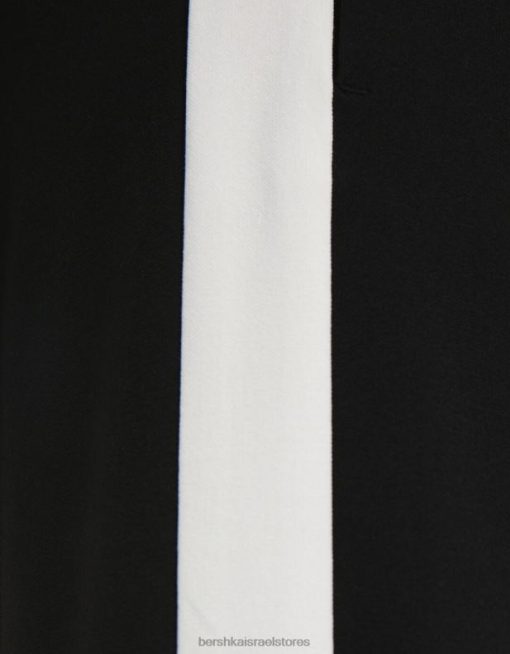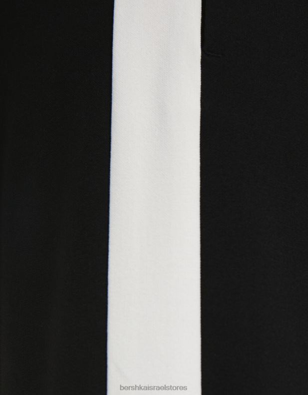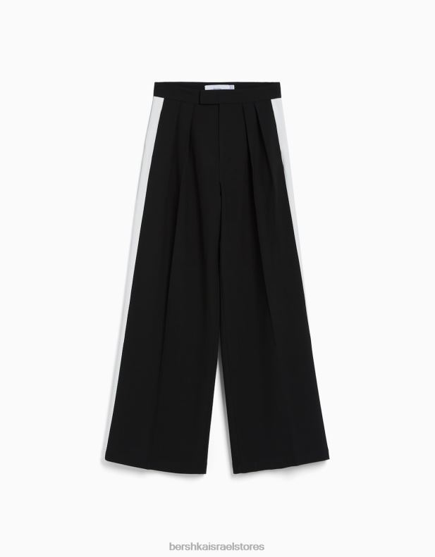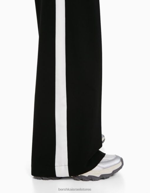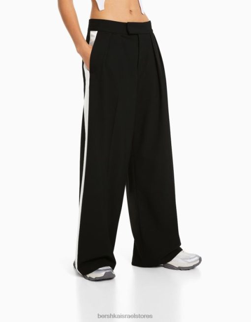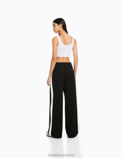 נשים מכנסיים מחויטים לרגליים רחבות עם פסי צד שָׁחוֹר 2L6JD1435 Bershka הַלבָּשָׁה