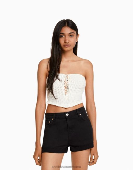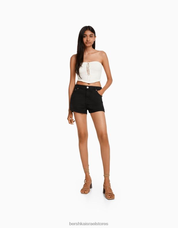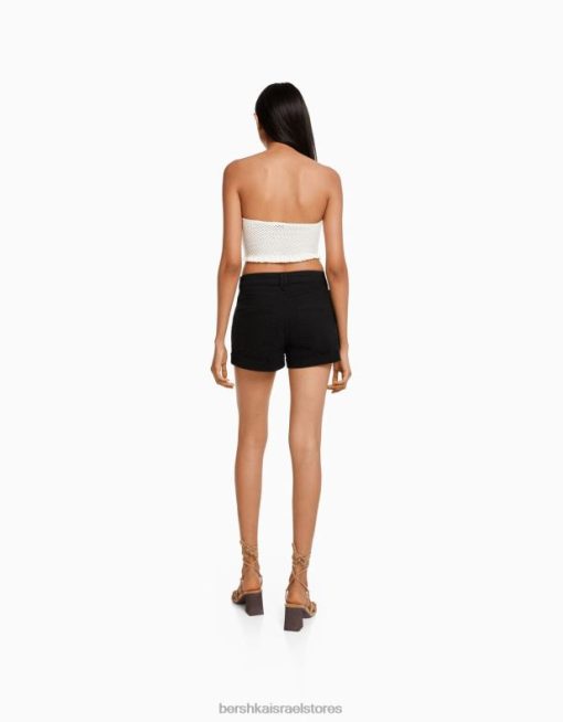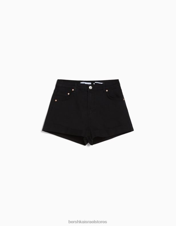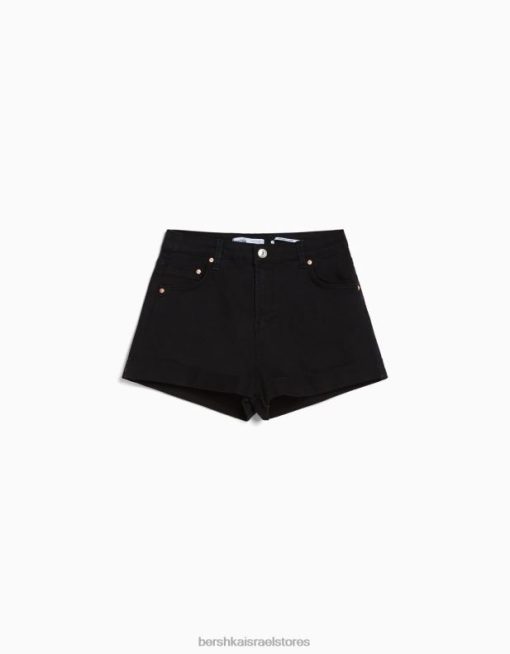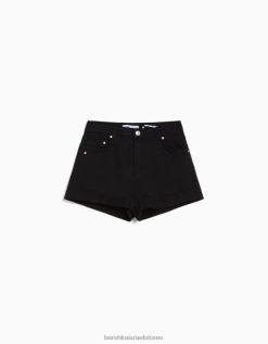 נשים מכנסי אריג נוחות עם מכפלות נפתחות שָׁחוֹר 2L6JD1695 Bershka הַלבָּשָׁה