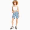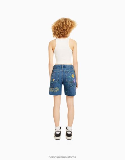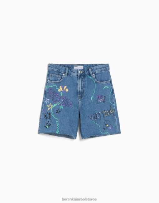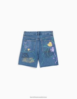 נשים מכנסי ברמודה ג’ינס מודפסים כחול בהיר 2L6JD1723 Bershka הַלבָּשָׁה